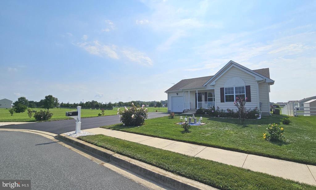 Your little slice of paradise awaits with a three bedroom, two bath ranch meticulously maintained on a Cul de sac that backs to open space and has open space/park views to the side. Location is everything and the owners feel this is the best homesite in the neighborhood. Your new home is only nine years young, original owners and no smoking or pets have been in the home. The lawn has been expertly maintained and flowering landscaping has been added. The curb appeal is eye catching, with charming front porch, freshly painted shutters, and extra wide driveway that can fit nine cars. The front door opens into a spacious living room, with sweeping vaulted ceiling, LVP floors and lighted ceiling fan. The heart of the home, the kitchen takes advantage of those gorgeous views of the open space from the slider and window over the kitchen sink. The elegant kitchen has LVP floors, granite countertops, stainless steel appliances, (refrigerator included,) island, recess lights and pendant lighting. There is also a cabinet pantry and a closet pantry. The eat in kitchen includes the flat screen TV. The large owner’s suite easily fits a king size bed with room for multiple bureaus, there is an extra window on the side for additional natural light and a walk in closet. The four piece ensuite owner’s bath has a double seat walk in shower with handheld shower head, and luxurious soaking tub with jets to ease those aching and tired muscles after a day of work. Transom window in the bathroom allows in natural light without compromising privacy. Two more bedrooms and a hall bath have their own hallway at the front of the home. A full basement is perfect for storage or awaits you to put your finishing touches. The current owners have made a home gym and are including the workout machines and TV there. Work from home? This is your opportunity, ethernet line has been run down to the basement, where the owners set up an office area with desk and break area, this furniture is included too. Egress window allows in natural light. There is a garage to keep your car out of the weather or store your outdoor equipment. Off the kitchen slider is a deck which gives you outdoor entertainment space and allows you to enjoy those views. The owners have lovingly maintained the home and put in all new carpet and padding and luxury vinyl plank flooring within the last two years. The whole home has been painted in the last year with a neutral color to go with any style. Its a true turn key home, you just need to add your furniture. All of this in the community of Sunnyside Village, within walking distance to the playground with picnic tables under a shaded area, play equipment, benches and basketball court. The community is nestled in the town of Smyrna known for its historic Main Street, Opera House, Lake Como, abundance of eateries, wellness facilities, and shopping. Don’t miss out book your tour today!
