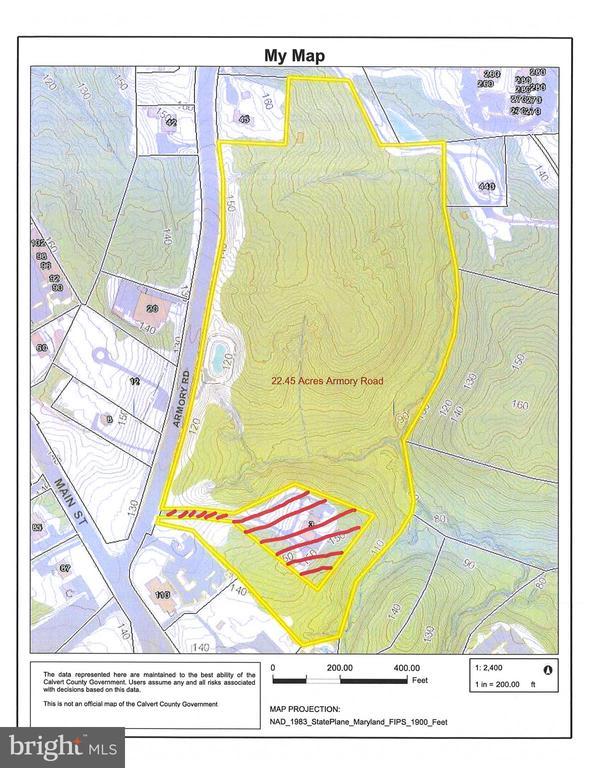 Attention Developers and Investors!!! 22.45 acres in the heart of Old Town Prince Frederick. Largest developable parcel within walking distance to the Courthouse, County government, restaurants, offices, schools, place of worship, medical offices, day spas, stores, etc. Mostly wooded parcel with potential for housing, mixed use commercial /office development. Housing uses could be apartments, senior housing, etc. Steps off of Prince Frederick's Main Street with large frontage on Armory Rd. Rare opportunity for an investor to create a major project in the perfect location. Please see the Prince Frederick Master Plan and Zoning Ordinance in Documents on Bright MLS or through the Calvert County Government website. Currently in a Forest Management Program, thus taxes are very low.