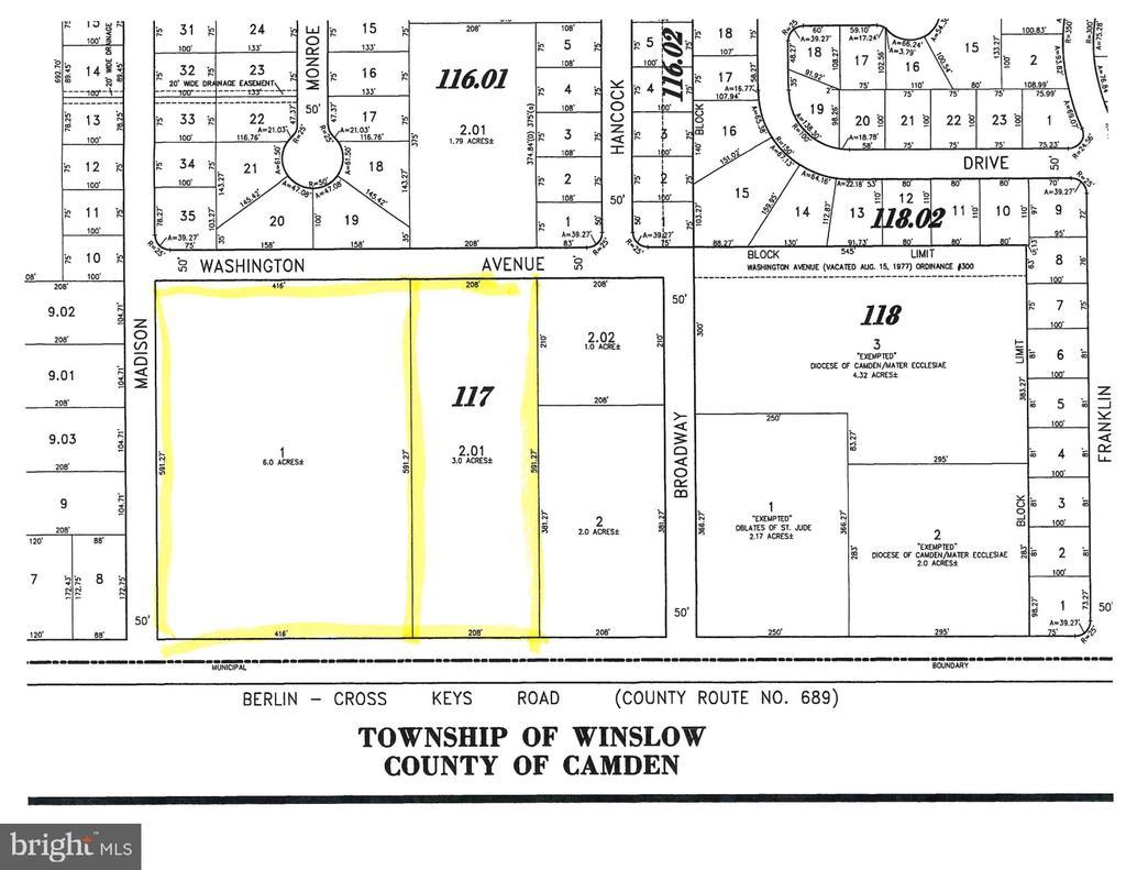 9 acres on Cross Keys Rd . This is where the action is! Corner lot with 624 ft frontage, public water and sewer. Presently zoned Limited Business District with huge commercial potential. Shopping center, pad sites for fast food, convenience stores, apartments, townhomes. Awesome location! This property can be combined with listing MLS NJCD2098412 to create 11 acres.