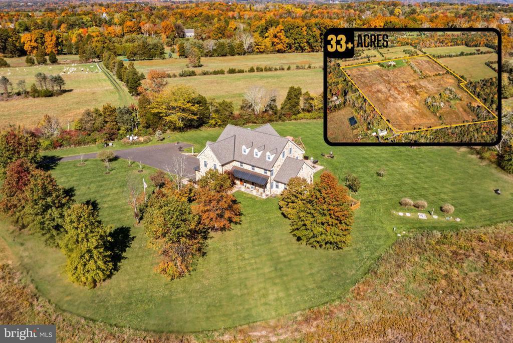 A rare 33.8-acre estate in the heart of Bucks County offering privacy, scale, and timeless character. Tucked along a quiet country road, this Act 319-protected property is primarily open and level with wooded edges and sweeping sky views. A 6,200+ sq ft stone residence anchors the landscape with architectural presence and generous proportions, ready to be refined or reimagined. The acreage invites endless possibilities—stables, guest houses, gardens, a pool, or curated outdoor living spaces. Minutes to New Hope, Carversville, and Doylestown, and within easy reach of New York City and Philadelphia, this exceptional property offers the rare chance to create a private country retreat of lasting significance. Also see MLS PABU2078490.