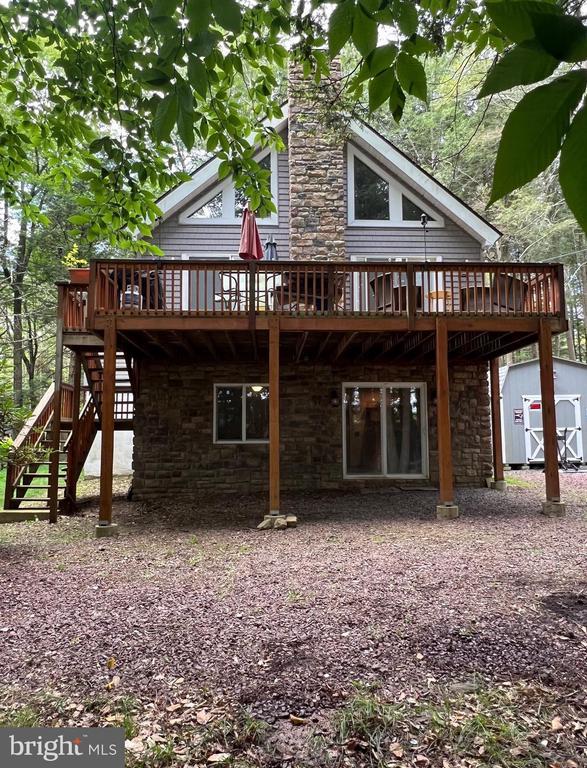 Welcome to this big beautiful 4 bedroom 2 bathroom detached single-family chalet that sits on an acre of land, between 2 lots located in the Holiday Pocono Civic community in Albrightsville PA. This property has so much to offer, including a bar, wood burning stove, hot tub/spa room, Ionic heaters, convection oven, new siding & shingles, new windows, new rugs, 2 newly renovated bathrooms(2021), tankless hot water heater, ductless air/heater, pallet stove, new barn door in kitchen, updated electric, all new appliances, washer/ dryer, a spacious loft, new shed with electric and an additional lot right next to the property. This chalet is also in one of the best communities in the area with the lowest HOA fee.