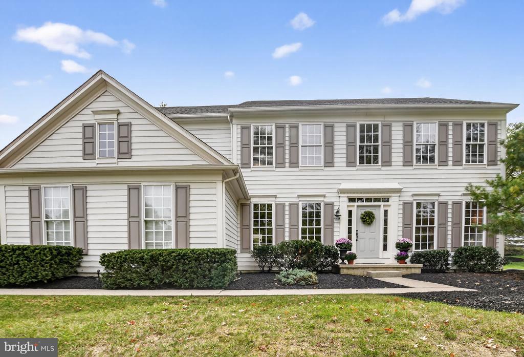 This stunning Colonial offers timeless curb appeal and is perfectly positioned within the highly desirable Chestnut Creek community. A landscaped walkway leads to the welcoming entrance, where the foyer greets you with gleaming hardwood floors that extend throughout much of the main level. To the right, the formal living room is filled with natural light and highlighted by French doors and a shiplap accent wall, currently used as a second home office. To the left, the elegant dining room showcases detailed dental crown molding and custom millwork, creating an ideal setting for both holiday gatherings and formal entertaining. A private home office with wainscoting and crown molding provides a refined space for quiet productivity. At the heart of the home, the spacious family room features soaring ceilings, a fireplace, and expansive windows framing picturesque views of the outdoors. This open-concept design flows seamlessly into the gourmet kitchen, which includes abundant cabinetry, a large walk-in pantry closet, and a center island with seating. Stainless steel appliances include a five-burner gas cooktop and a wine fridge. From here, step outside to the deck designed for year-round enjoyment with both covered and open areas, a ceiling fan, and a fire pit. A mudroom with interior garage access and a powder room complete the main level. Upstairs, four generously sized bedrooms and two full bathrooms provide comfort for all. The luxurious primary suite is a true retreat, featuring a tray ceiling, a wall of windows, and a spa-like bath with dual vanities, a makeup area, and an oversized shower with dual shower heads. A spacious walk-in closet completes the suite. The finished lower level expands the living space with a full wet bar accented by pendant lighting and seating, a family area ideal for movie nights or recreation, and a full bath that allows flexibility for an au pair or in-law suite. A large unfinished section offers abundant storage and space for a workshop or future customization. The laundry area (sellers moved from mudroom to basement but can be moved back to mudroom with a few adjustments) includes a convenient folding cabinet, and a new hot water heater installed in 2021 provides added peace of mind. Ideally located just minutes from the PA Turnpike, award-winning schools, township parks, shopping, dining, and the local library, this home combines luxury, comfort, and convenience in one of the area’s most sought-after neighborhoods. Don’t Miss This Opportunity—Schedule Your Private Tour Today!