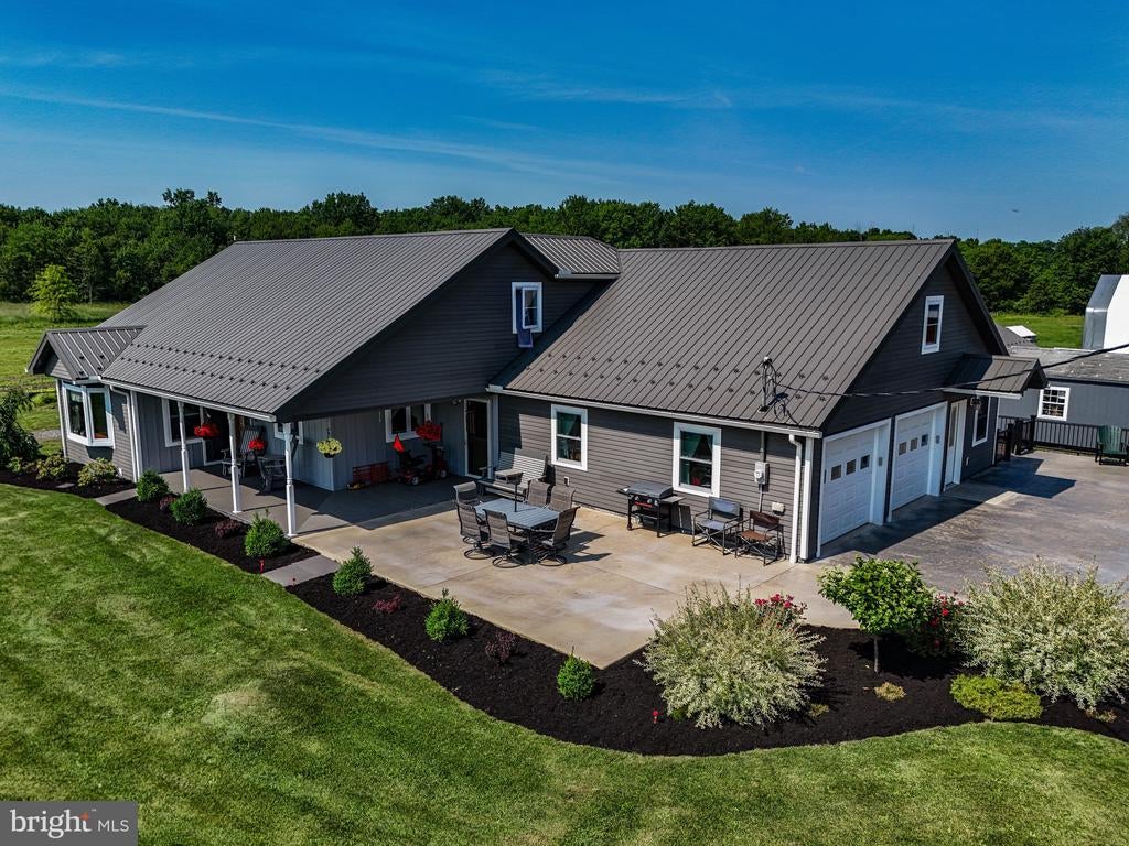 Discover light‑filled living the moment you enter the updated kitchen with center island, flow through an airy bay‑windowed living room, relax in a SafeStep spa tub, or gather on the full‑length sun porch. A finished lower level with cold cellar keeps seasonal goods secure year‑round. Step outside to an entertainer’s back patio complete with built‑in outdoor kitchen, while a classic front porch connects to a second patio for quiet morning coffee. Car lovers and entrepreneurs alike will appreciate the in‑floor‑heated two‑car garage featuring its own office, bath, and laundry. Fully wired, grid‑tied buildings are backed by a 48‑volt solar system with battery storage—lower bills and greater independence. A 14‑ft‑ceiling shop/garage, two‑story buggy shed, 20 40 coverall building, multiple garden & mower sheds, plus a finished outdoor office support every hobby, side business, or homestead project you can imagine.