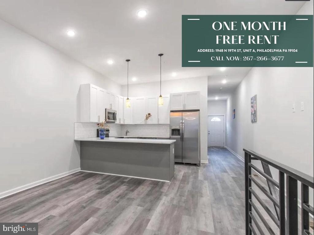 ***ONE MONTH FREE RENT*** The biggest in the area, almost 2000 sq. ft., 4 bedrooms, 4 full bathrooms, New Construction for rent near Temple University! Each floor boasts 2 large sized bedrooms with spacious foyer for keeping coats, private full bathrooms. On the first floor, it has 2 large bedroom with it's own private bathroom. Walk to the lower level, 2 additional spacious bedrooms with its own private bathroom as well. Building has gated main entrance! Main level features custom made kitchen with quartz counter tops, stainless steel appliances, gorgeous tile backsplash, exhaust hood and beautiful lighting fixtures. Spacious common area can be used as a dining/living space, and has 2 huge closets. There is an exit to the private backyard which is perfect for outdoor gatherings and grilling. The lower level also has 2 oversized closets and large laundry room. Call now!