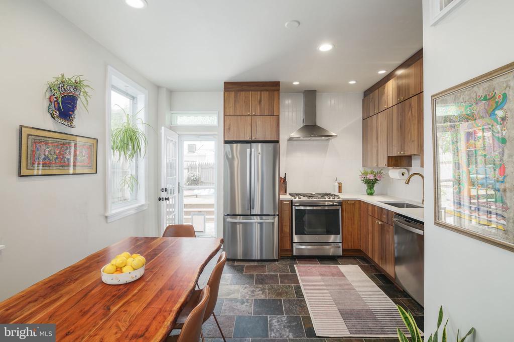 Welcome to this gorgeous 4-bedroom, 1.5-bath home located in the charming neighborhood of Fishtown. From the moment you enter, you'll be captivated by the stylish ambiance that fills every corner. This home seamlessly combines classic design with contemporary touches, creating a truly captivating living space that is not to be missed. As you enter the home, you'll be greeted by a cozy living room that exudes warmth and invites relaxation. Natural light floods the space, creating a bright and inviting atmosphere. Moving towards the rear of the house, you'll discover a modern updated eat-in kitchen that is sure to impress. With stylish vertical subway backsplash, modern quartz counters, newer (2022) stainless steel appliances, custom warm walnut European frameless cabinetry, brass pulls, and clever storage solutions like double drawers, pull-out pantry shelves, and a hidden microwave cabinet; this kitchen is a dream come true for any culinary enthusiast. A powder room with a pop of color, brass hardware, and a pocket door adds some flair and convenience to complete the first floor. One of the highlights of this property lies just beyond the kitchen: the expansive backyard provides a serene outdoor space that is perfect for hosting summer barbecues. The large trex sun deck complete with pergola, recessed riser lights, and an overhead fan create a peaceful retreat. The built-in Stock Tank pool with filter is the epitome of suburban oasis and an entertainers dream. The second floor is home to two of the four bedrooms. The primary bedroom is expansive, with a full wall of closets and with Southern facing windows it is drenched in natural light. The smaller second bedroom is currently being used as an office space, but was previously used as a nursery, as well as fitness room. A stunning updated full bath, adorned with elegant brass fixtures, beautiful quartz counters, and a luxurious deep soaking tub complemented by a convenient double vanity complete this floor. Continue to the third floor where two ample sized bedrooms, boasting generous closet space, and more natural light await you. The third floor also provides access to the attic which allowing for additional storage space. The basement runs the full length of the home. The front space, while unfinished, has high ceilings and houses the laundry and utilities. The back space is perfect for storage. Located at 2215 E Boston St, this home offers excellent proximity to the Berks station of the Market-Frankford Line, granting easy access to both center city and the greater Philadelphia area. Embrace the vibrant neighborhood and all it has to offer. Start your day with a delightful coffee from Forin Cafe and take leisurely strolls in nearby Pop’s Park, or Conrad Square. Enjoy outdoor activities with your family and neighbors at Mural City Gardens summer pop-ups. Indulge in a scrumptious brunch at the renowned Suraya. You'll find yourself surrounded by a variety of notable restaurants, including the acclaimed Kalya, Martha, Tulip Pasta & Wine Bar, WM Mulheirns, and not to be missed dollar taco night at Loco Pez. Grab groceries from River Wards Produce. And with Fishtown Plaza just a short distance away, you'll have a wide selection of stores to fulfill your shopping needs. With plentiful parking available on the quiet street, convenience is ensured.