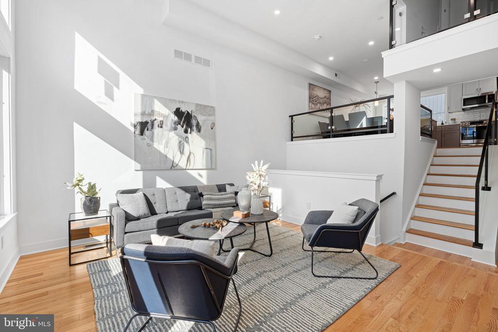 Welcome to 1325 S. Capitol Street, just a 15-minute walk to Center City! This luxury townhome offers exceptional value with garage parking, modern design, and a private roof deck. Located in the Wharton Court, the premier luxury development in Point Breeze, this home features a thoughtful layout that blends open-concept living with comfort and convenience. The main living area boasts soaring 14’ ceilings, sleek glass railings, and expansive front windows that flood the space with natural light. Perched on a mezzanine level, the kitchen overlooks the living room and dining area, creating a dramatic sense of openness. Outfitted with a peninsula and high-end GE Profile appliances, it’s the perfect setup for both daily living and entertaining. Just above the kitchen, the full-floor primary suite offers an oversized bedroom that easily accommodates a king bed, a spa-inspired bathroom with a double vanity, built-in storage, a water closet, and a glass shower, plus a walk-in closet ready to be customized into the dressing room of your dreams. A half bathroom on the primary landing ensures guests never need to access your personal retreat. The top floor features two spacious bedrooms, a full hall bath with soaking tub, and a laundry room, adding additional storage. A versatile nook offers the perfect spot to put a wine or beverage fridge—ideal for entertaining on the private roof deck with stunning skyline views. Additional highlights include solid hardwood floors throughout, a finished basement that can serve as an office, gym, or second living room, smart home technology with a Google door camera, and oversized windows that enhance the home’s bright, airy feel. Ideally situated in the northern section of Point Breeze, this home offers easy access to Rittenhouse Square, Sprouts Organic Market, Giant Heirloom Market, Dock Street Brewery, ALDI, CVS, and more. Point Breeze is one of Philadelphia’s fastest-growing neighborhoods, celebrated for its vibrant dining scene, local parks, and close-knit community feel. Wharton Court places you just minutes from University City, CHOP, and I-76—all while being walkable to Center City and some of the city’s best cafes, restaurants, and shops.