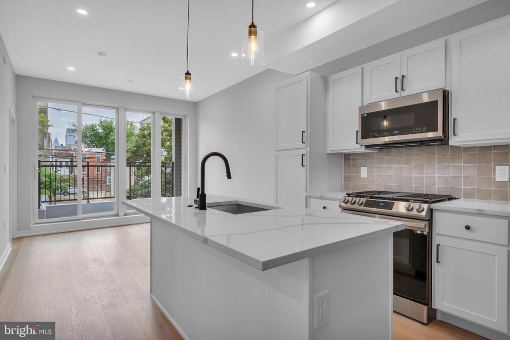 Check out this new construction 2 Bedroom / 2 Full Bathroom apartment for rent in booming Francisville. This open concept apartment features 9+ foot ceilings, luxury vinyl plank floors, quartz countertops, white shaker cabinets, and new stainless steel appliances! Enter Unit #3 into a beautiful galley style kitchen with island seating and overlooking the completely open living space. There are massive floor-to ceiling windows and a sliding glass door leading to your spacious and private balcony showcasing the Philly skyline. Just off the kitchen is a large bedroom with a nice sized custom built in closet with racks, shelves, and drawers. Continue through a sleek barn door to the en-suite bathroom equipped with subway tile, tub, new toilet and vanity. At the front of the apartment is a second large bedroom with custom built in closet and full en-suite bathroom. The apartment features brand new Pella windows, new electric, plumbing, central air/heat, washer/dryer, keyless building entry with video and so much more! Located a few blocks from the Broad Street Subway Line, Septa Bus stops, and Bike Share Stations. Also situated just a few blocks from The Met, Libertee Grounds, and super close to the attractions of Fairmount and Temple. First, Last & Security Required. Tenant pays utilities. Pet fee required. Non-Smoking Building.