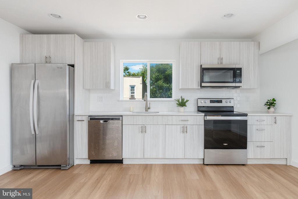 Built in 2022. Beautiful multistory apartment occupying 3rd and 4th floors of a corner property and rising above neighboring houses. Big private roof deck at the 5th story level. All rooms are big and airy with an abundance of natural light from large windows. Both bedrooms on the 4th floor have extra large closets. Third floor bedroom can also be used as a family room or a large office. In-unit washer/dryer. Plenty of storage space. Private entrance with space for a bicycle and/or a coat rack by the door. Hardwood floors throughout. Video door bell and intercom system that allows you to buzz people in with the touch of a button. Ample street parking. Walking distance from Fishtown.