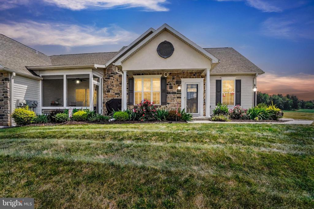 You don’t have to compromise on space or amenities to downsize in this 3-bedroom, 2.5-bath villa, spacious first-floor living with two bedrooms, including a luxurious primary suite featuring a spa-inspired bath with a soaking tub, heated tile flooring, and separate his-and-her closets. The gourmet kitchen boasts granite countertops, upgraded maple cabinetry, a convenient snack bar, a stylish tiled backsplash, and a pantry for added storage. Upstairs, a private guest suite provides comfort and privacy for visitors. Thoughtful upgrades include an internet-connected thermostat and wi-fi connected garage door, an expanded front porch, and a screened patio with tile floors for outdoor enjoyment and if desired easily transformed into a 4 season space if desired. Additional features include upgraded LVP flooring and ceiling fans throughout. Located in a desirable, walkable community offering a clubhouse, walking track, playground, and basketball courts, this home also includes the rare benefit of a two-car garage.